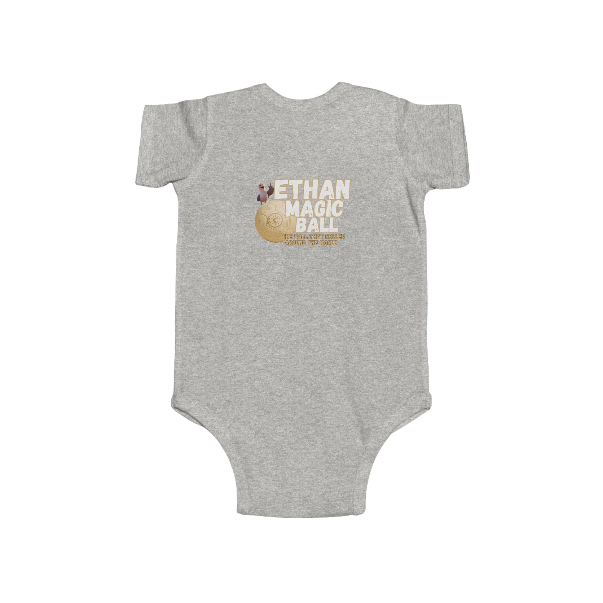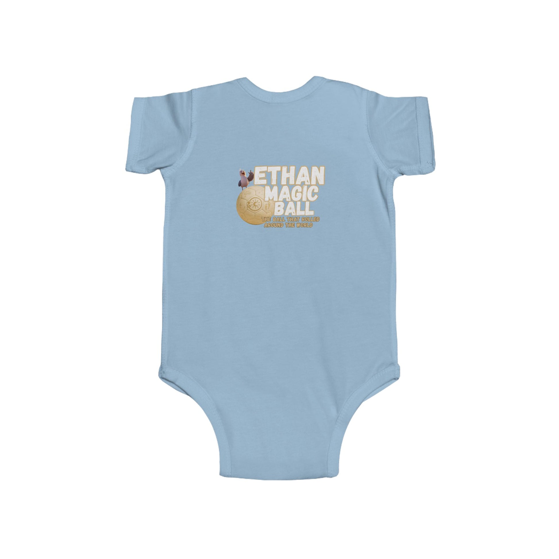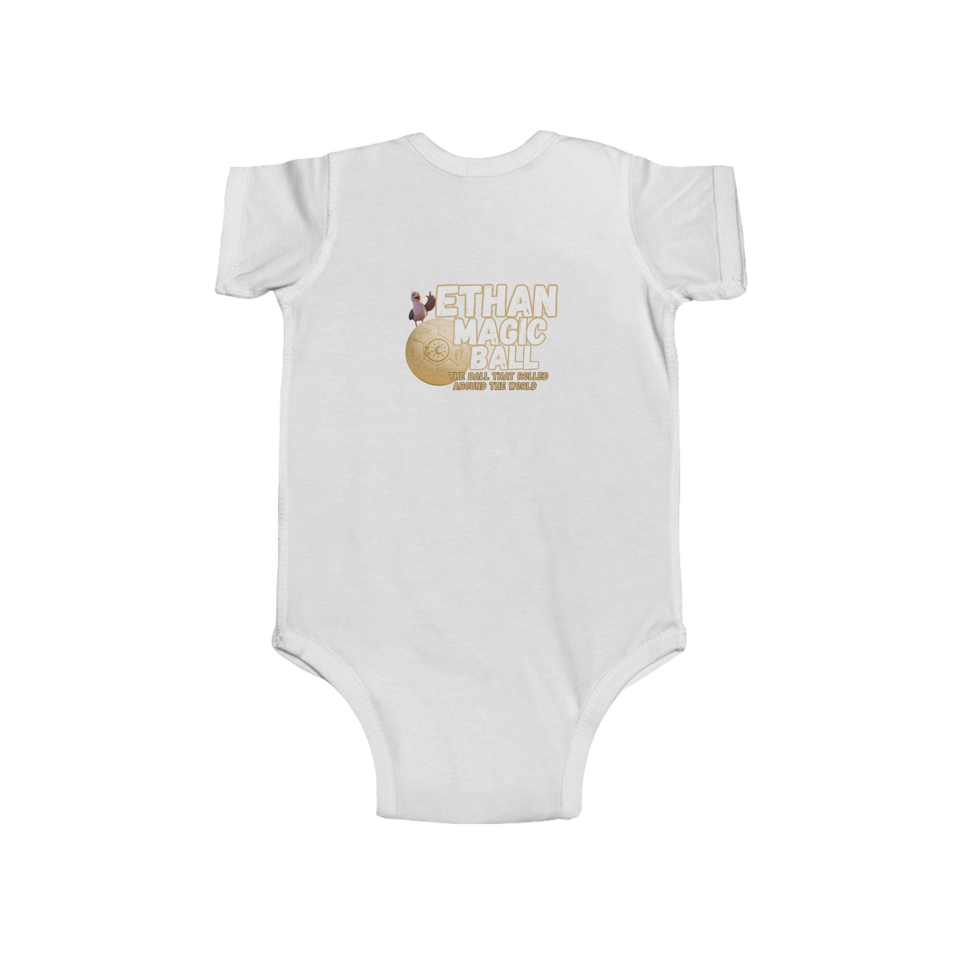 Wrap your little adventurer in the magic of Ethan with this cozy and charming infant bodysuit! Inspired by the world-traveling, joy-spreading soccer ball, this outfit brings playful energy and gentle comfort to every moment. Made from ultra-soft fabric that’s perfect for sensitive skin, it’s ideal for everyday exploring, storytime snuggles, or magical first milestones. Featuring vibrant designs from Ethan’s journey, it makes a thoughtful gift for baby showers, holidays, or any day that could use a little extra wonder. Soft, durable, and full of heart, just like Ethan himself.