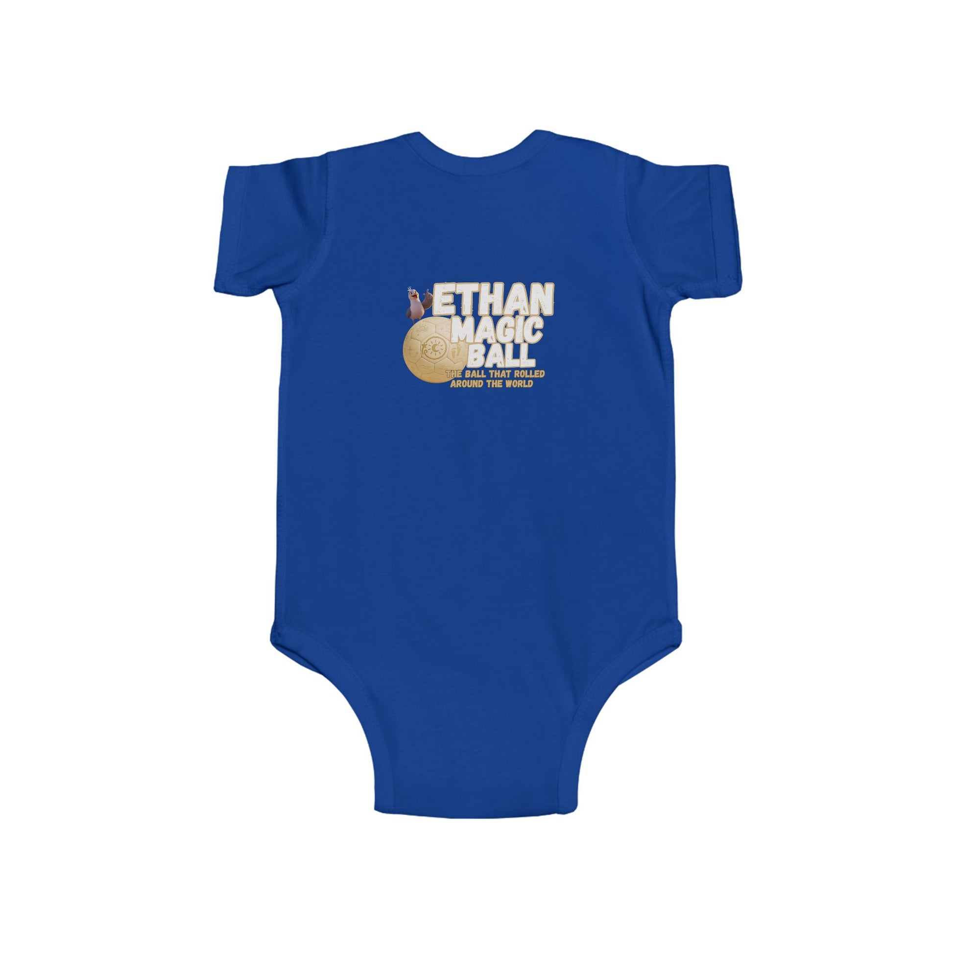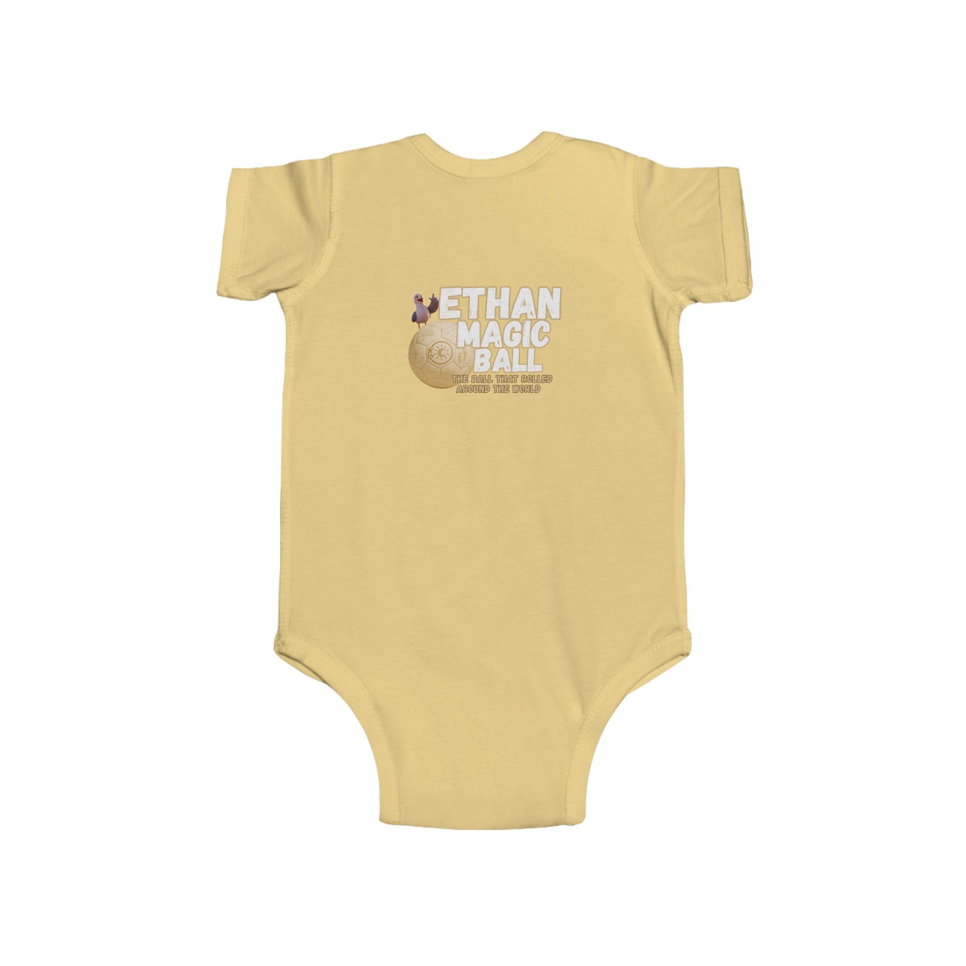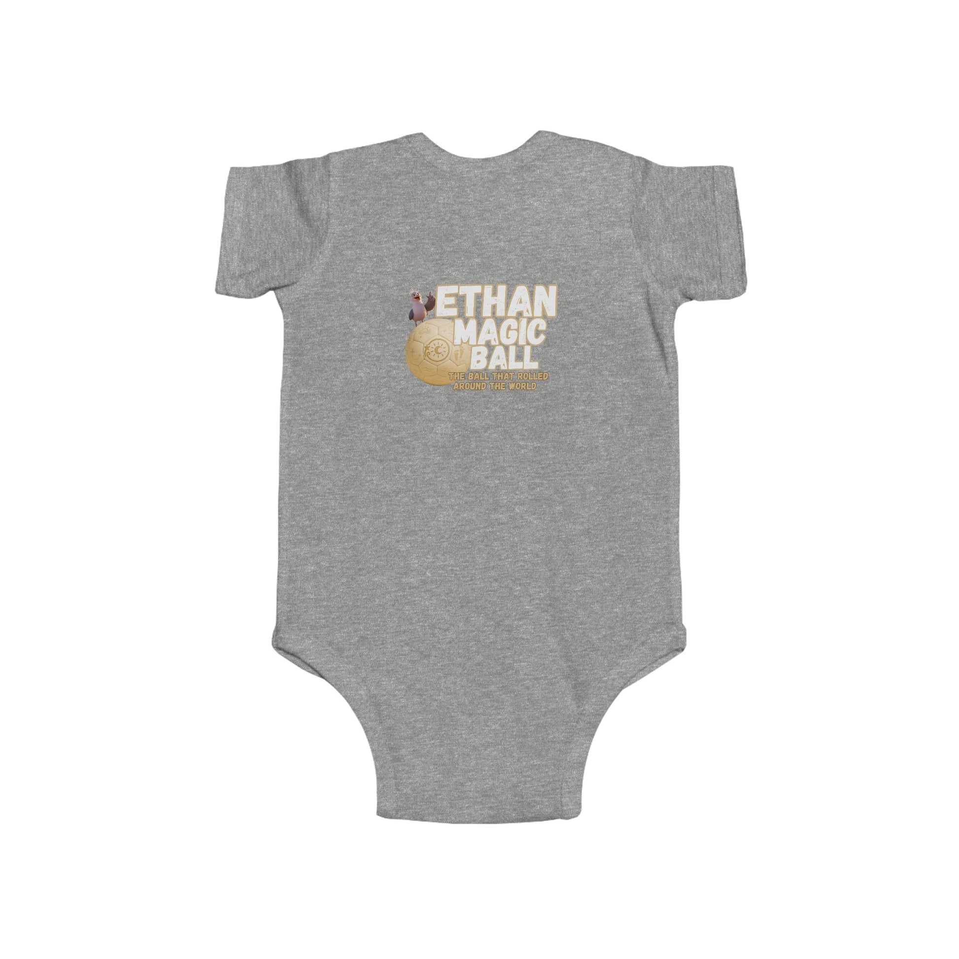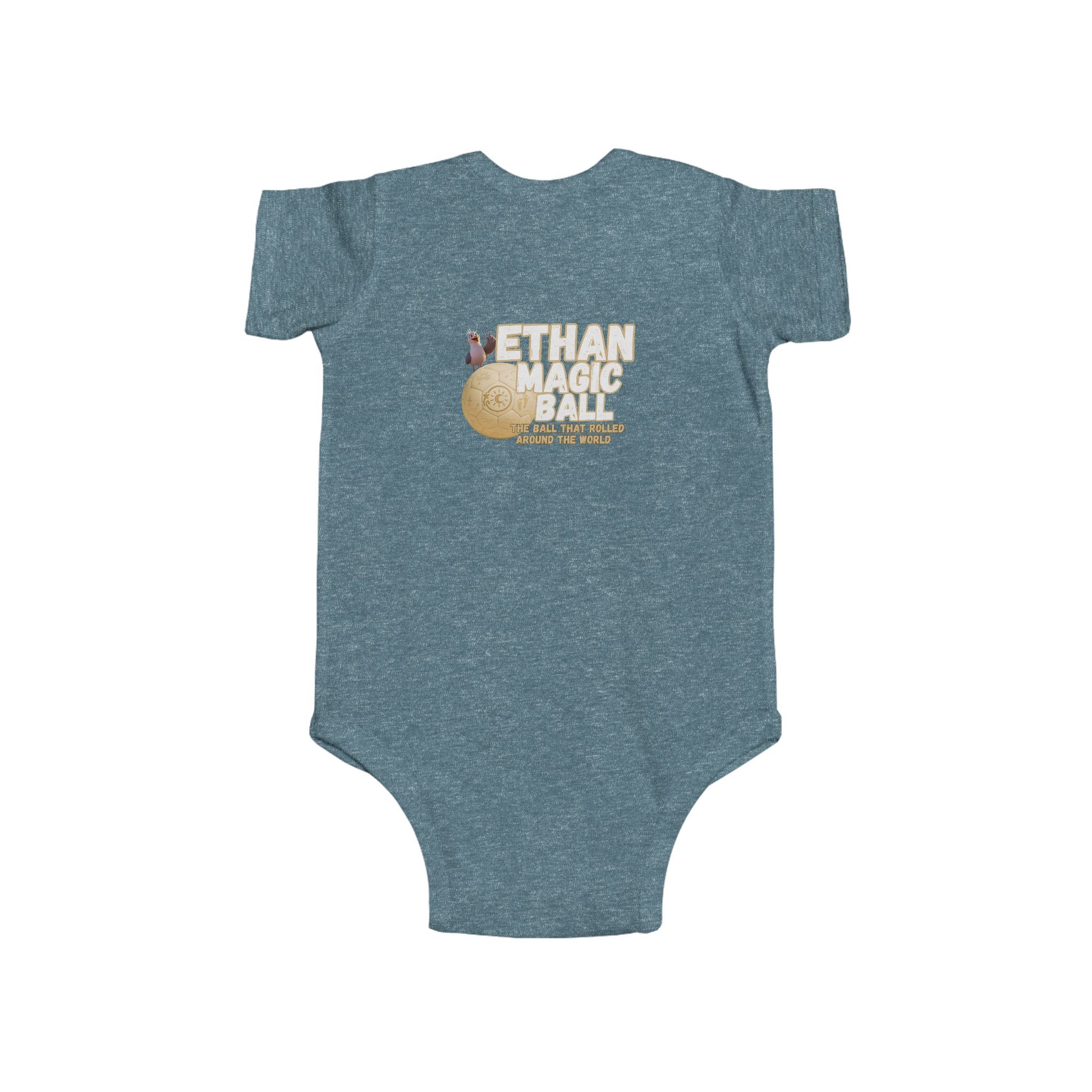 Wrap your little adventurer in the magic of Ethan with this cozy and charming infant bodysuit! Inspired by the world-traveling, joy-spreading soccer ball, this outfit brings playful energy and gentle comfort to every moment. Made from ultra-soft fabric that’s perfect for sensitive skin, it’s ideal for everyday exploring, storytime snuggles, or magical first milestones. Featuring vibrant designs from Ethan’s journey, it makes a thoughtful gift for baby showers, holidays, or any day that could use a little extra wonder. Soft, durable, and full of heart, just like Ethan himself.